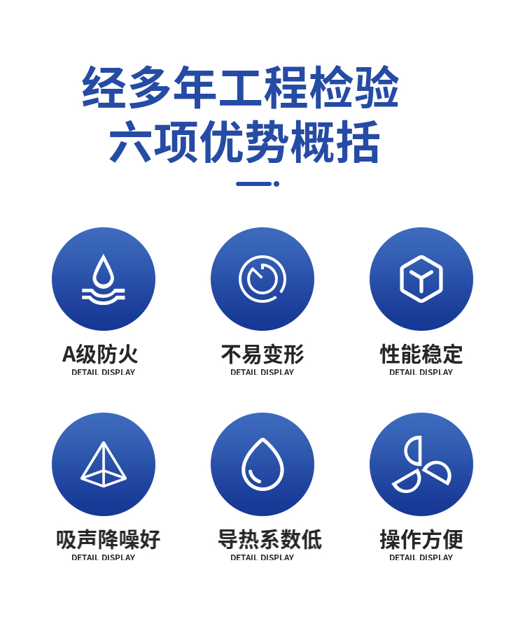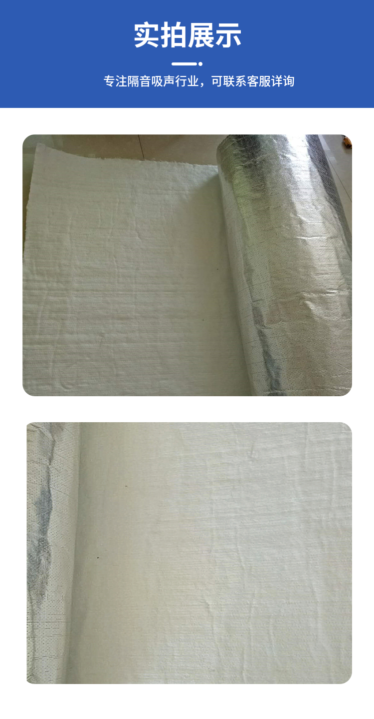 四、20mm厚玻璃纖維吸音氈 主要特性 1、導熱系數低:根據物理原理,氣體的熱傳導率小的斷熱材質內部均有很多空氣穴。而針刺毯隔聲板具有無數細小氣體,且纖維呈現不規則排列,為隔熱材料,熱傳導系數0.032 W/(m.K)之間。