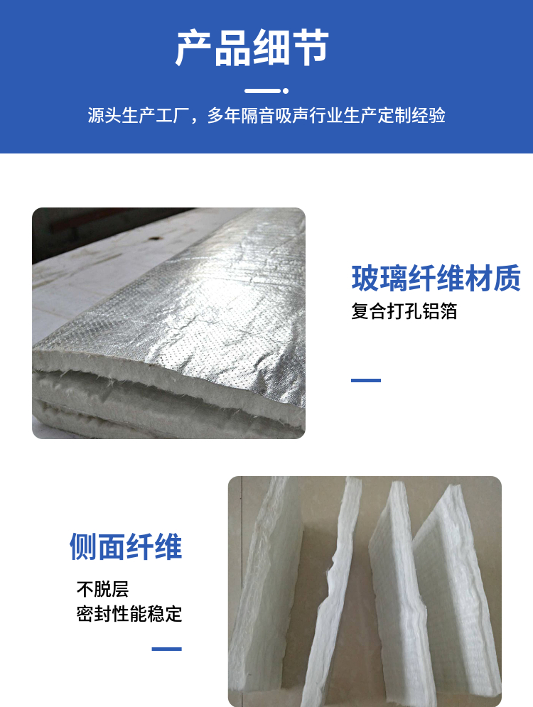 二、20mm玻璃纖維吸音氈隔聲生產工藝: 針刺氈隔聲是由針刺氈纖維經過短切、梳理、蓬化開松、梳理成網狀、鋪疊成氈、鋪粘鋁箔布、針刺制氈,針刺機對針刺毯隔聲板進行針刺,針刺時形成若干垂直針刺氈纖維,使針刺氈纖維互相聯結,成為具有一定強度的針刺氈纖維。